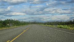 Three weeks in Alaska already? Time to go, but this is the way we like to remember Alaska, clear blue skies and fluffy white clouds over the mountains, and the forever undulating roads and hills through the forests. Arrived Tok 11-am for refuel and lunch and email check. Still flipping a coin over which way to go. I recon we will stop at the Visitor's Center to ask what they may know about Top Of The World Highway and the road from Dawson City to Inuvik. Then we may be out of touch for a few days.