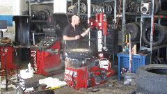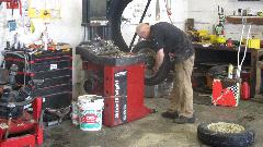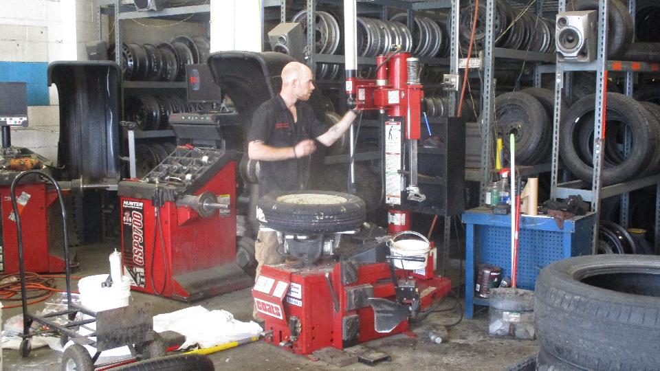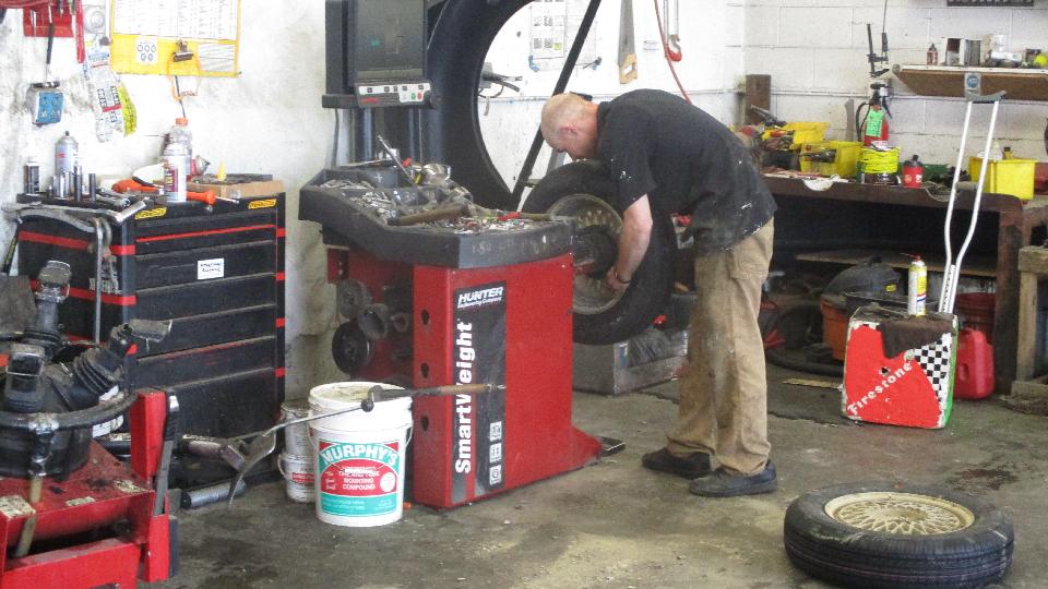 These guys are quick, installing and balancing new tires on the alloy wheels (with tape weights) in short order.