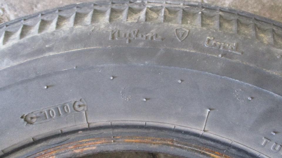 Then it was time to say goodby to an old friend. The tire that has been serving us well as the emergency spare for decades was on the car when I bought it in 1977, and it was a used tire then. It is Firestone 5.60-15 4-ply bias-ply nylon tire from maybe 1972 (45 years old?). It has been used maybe 50 miles at a time once ever 10 years or so when needed. But its most recent job was a 500 mile run from the Steese Highway, 24 miles of rough gravel road before the rest of the distance on pavement. For reference, when running at highway speed on pavement, after half an hour I stopped to lay a hand on the tires for temperature comparison. The old bias ply tire was notably warmer than the modern radial tires, wild guess maybe 135dF vs 120dF. The temperature difference represents rolling resistance from internal friction, generating the heat, affecting fuel economy. At highway speed the temperature rise limits the speed rating of the tires (to prevent overheating). This is why the world has largely moved on from bias ply to radial tires, and the bias ply tires are now for concours show cars only.