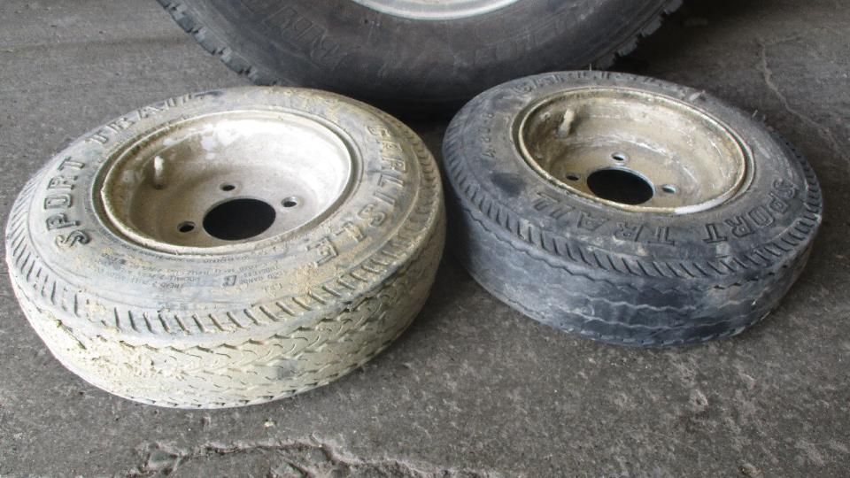 The remaining good radial tire was reinstalled on the steel wheel to resume service as the spare tire. The two expired trailer tires were tossed out to be properly recycled, and we were soon on our way.