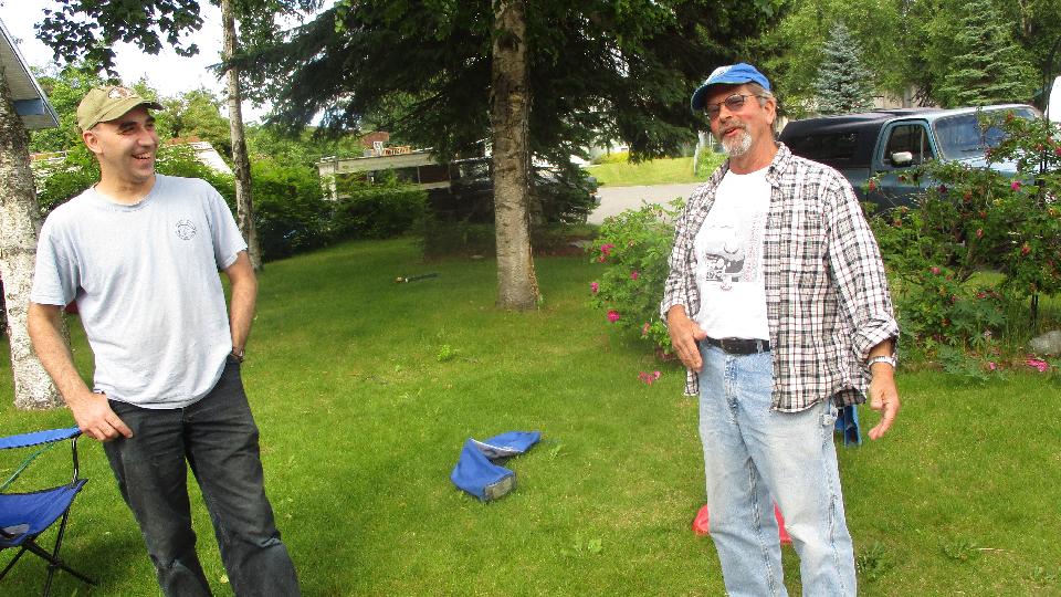 Could maybe be done at a currency exchange for some unreasonable fee, better done at a proper bank, but banks like to deal with their regular account holders. So we made a call to request a favor of a friend in the neighborhood, then a short run across town for another visit with Del Rawlins. We were spotted on the street and ultimately followed, to Del's place by Ken Morton, newsletter editor for British Sports Cars Alaska. Small world among good friends. After some idle chat we had to take care of the banking business.