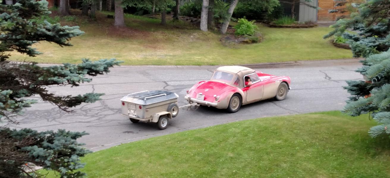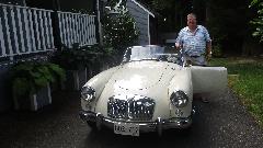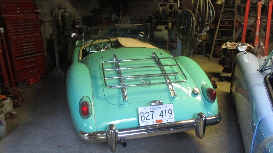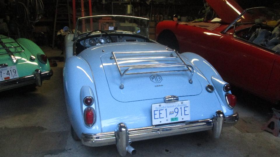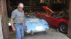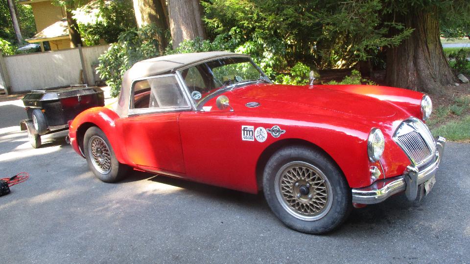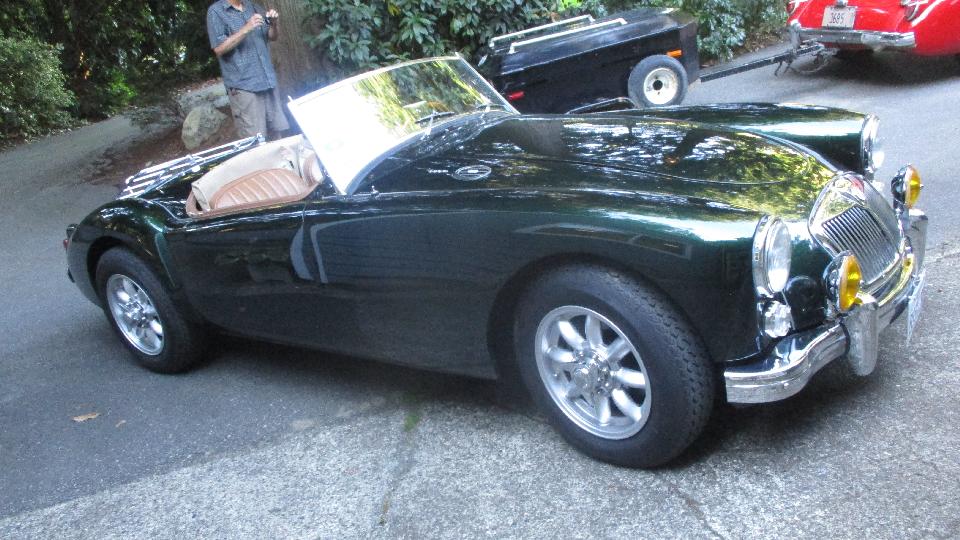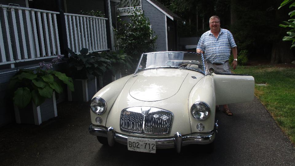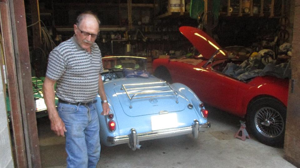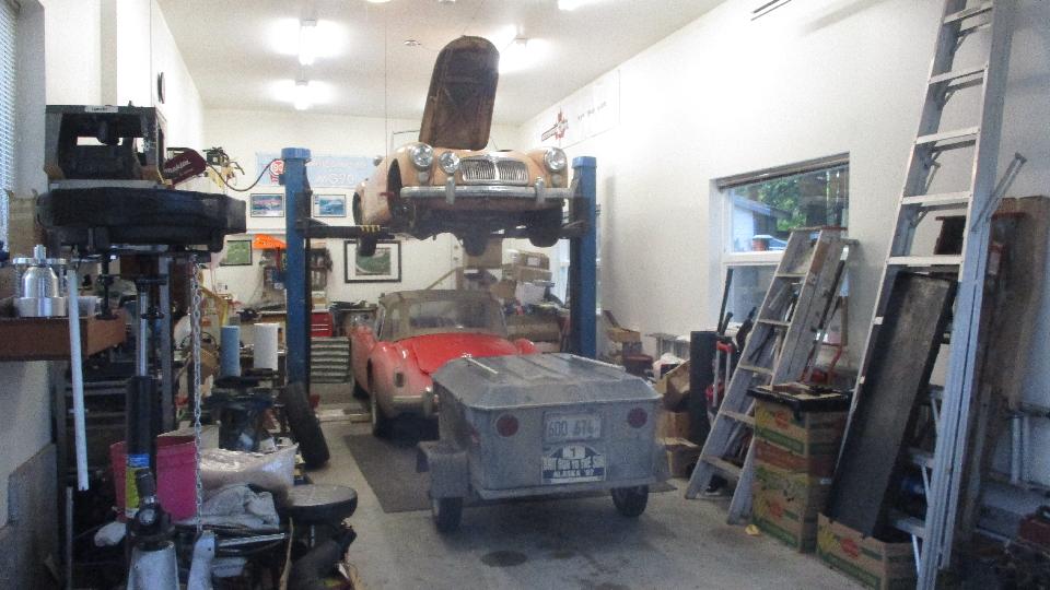 Meet Peter Tilbury in Surrey, British Columbia, Canada, with his nice daily driver MGA. My car and trailer got tucked into the workshop. The MGA on the rack belongs to a friend, has been in the family since new, but has been off the road for 40 years. It is currently in process of recommissioning, which should be done soon.