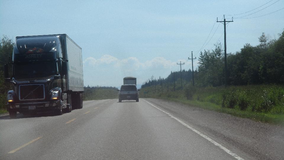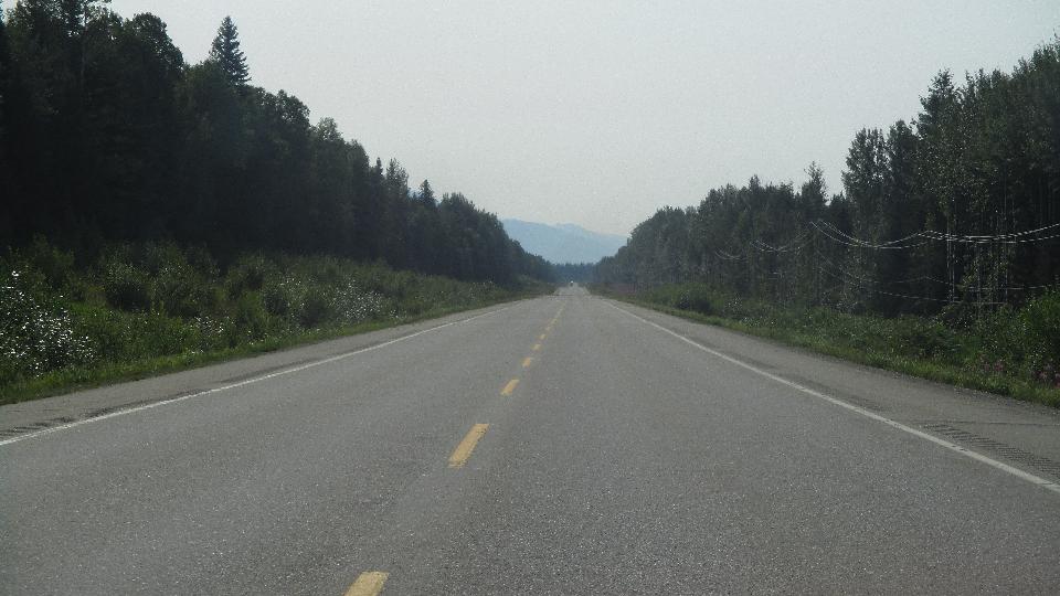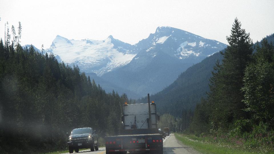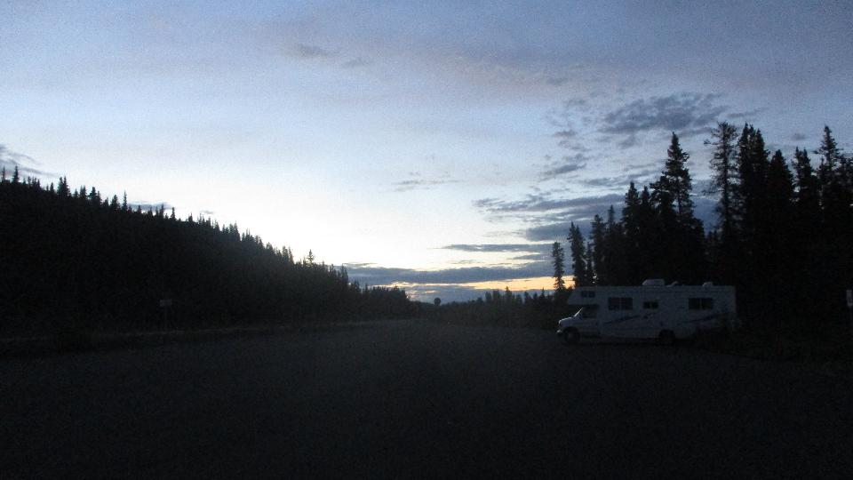 Then we ambled over to a McD's that had typically crappy WiFi, but next door was a Starbucks with great WiFi (which we tapped into without moving). First good WiFi connection since leaving Alaska, so we spent the rest of the day half way catching up with the world. Still three days behind on photos and notes, and we have a very long driving day ahead of us on the morrow. Forest fires have closed Route 97, so we will have to detour on 16 and 5 which will add another 105 miles. Hour and a half down 16 makes it dark again, but this time we found a slightly more formal rest stop for a couple creature comforts near Houston, BC. Only 271 miles for the day, but it was a decent trade-off, and we were within striking distance of tomorrow evening's appointment.