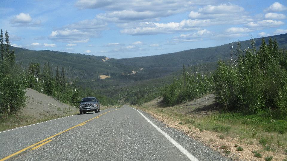 Nah, it was just a tease. We didn't really go there, not part of the mission statement, and we have no idea what we might find or accomplish that we can't find on the internet these days. I don't suppose we have to do it just to prove that it can be done. So, turn around and head south another 86 miles on YT-2/Klondike Highway, a nicer road anyway. 87 miles on a short after hours fuel stop at Stewart Crossing, and roll on.