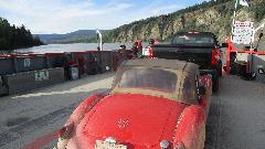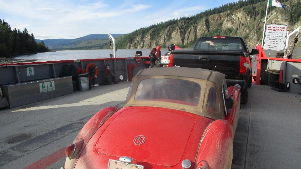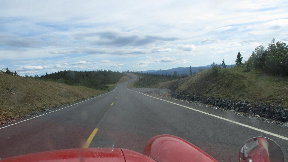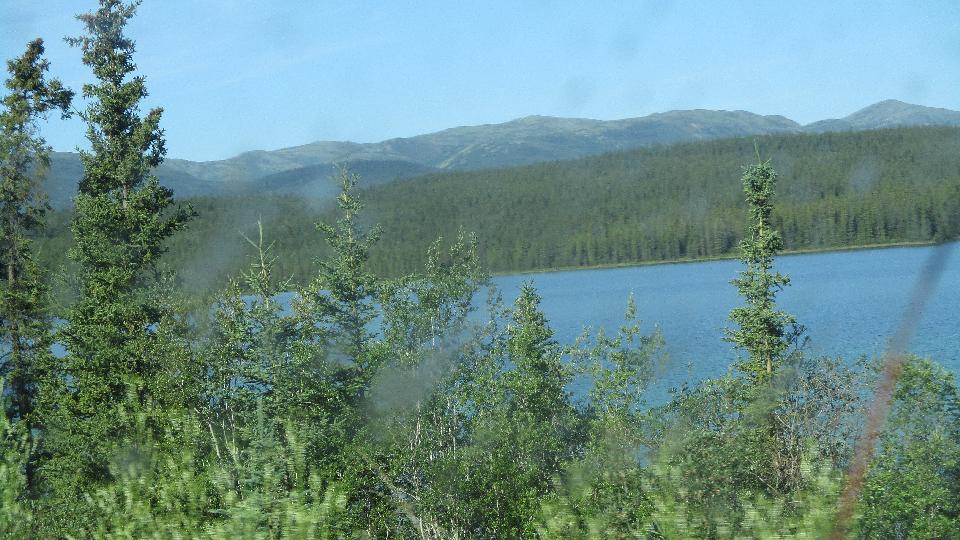 Some noisy crow woke us up early, so we were off and running again, continuing down the Klondike Highway. No appointments in Yukon Territory, no clubs and maybe no MGs up here, at least none that I could ever find. So today is just about laying down miles heading south, with a long way to go. 177 miles on we hit Whitehorse for a fuel stop and lunch mid day, then went looking for on oil change. Walmart auto shop had a sign saying "Auto service by appointment only", and the door was locked. Jiffy Lube was closed on Sunday; bummer. Also still looking for a couple more car tires, but Canadian Tire said "Not in this town".