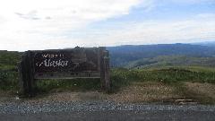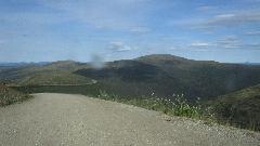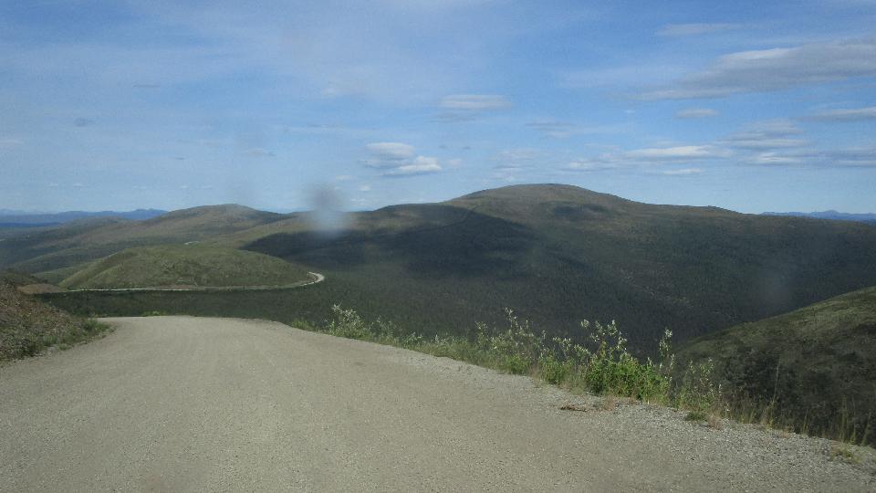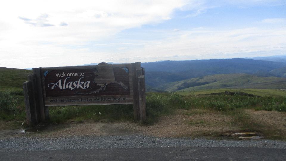 After the Taylor Highway, then another 79 miles on Top Of The World Highway, crossing into Canada (Yukon Territory). Nice Welcome to Alaska sign within sight of the checkpoint, and wonderful view of Alaska. Easy border crossing with smiles, but no Welcome to Canada sign on the other side.