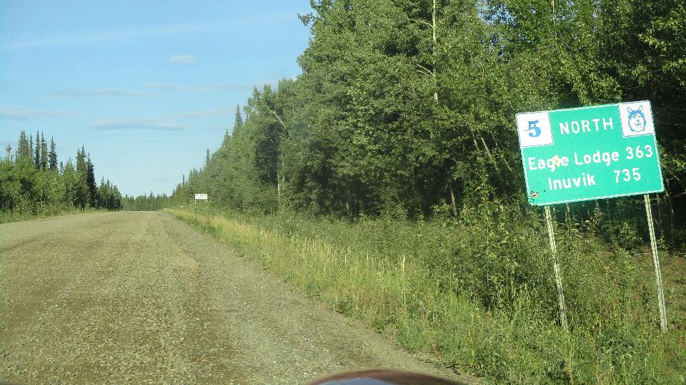 24 miles out of Dawson, hang a left onto YT-5/Dempster Highway toward Inuvik.