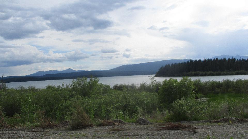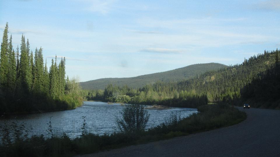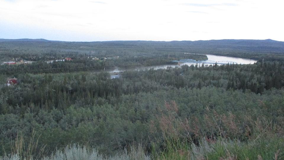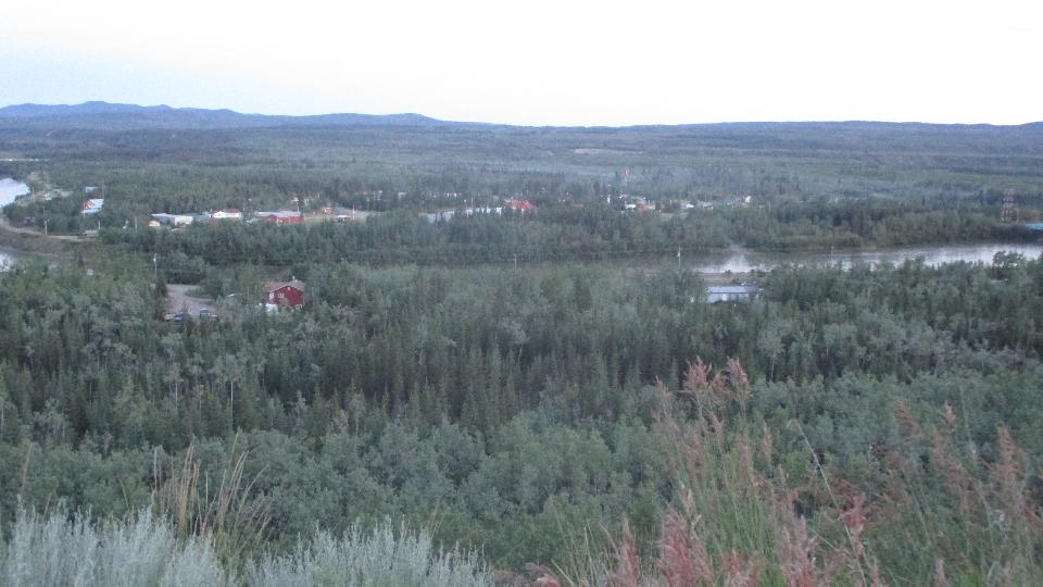 Another 44 miles on we found this nice eagle's eye view of Pelly Crossing on the Yukon River, which turned out to be a nice place to rest for the night, having gone 455 miles (in 12 hours driving time).