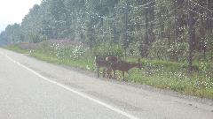 Swat a couple mosquitoes and get back on the road early, continuing south. Getting desperate for an oil change, almost considering draining it on the side of the road (well, maybe not that urgent). Finally cruise into Smithers where we hit four different shops, all too late in the day for an oil change, so time for a late lunch break and try WiFi again. So far all bad luck on McDonalds WiFI in Canada. While browser functions generally work, I can't use FTP to upload suff to my web site, and I can't download email, although I can send an email message (very odd). Also the Canadian cell phone still doesn't work this far north, so I'm beginning to refer to this as the "communications desert".