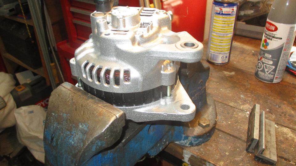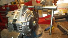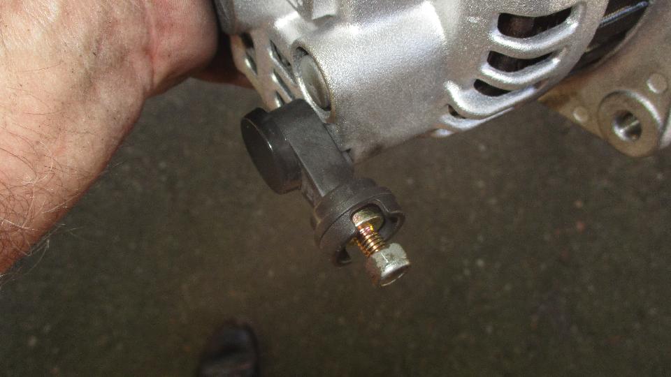 Third, a quick 90-degree reorientation of the power output terminal, which this time had one size larger male thread (for which I had to scrounge up a new 8-mm metric nut). Then install the thing (standard fare) with a new fan belt, fire it up and verify 14-volts output, and pack everything away. The failed alternator that had been making mild growling noises had a notable amount of end play in the armature shaft, meaning it had failed ball bearings. I was somewhat disappointed that this rebuilt replacement unit only ran a bit over 18 months and 60,000 miles (when the prior two originals had done 200,000 miles each). The adaptation was a heck of a lot more difficult the first time around. Back to the store to return the core (which they won't notice has been modified).