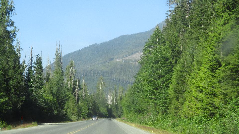 Good day this one with a visit to six of eight shops on our list, and all eight of them still in business (well, at least seven). Then one fuel stop and 115 miles east we were climbing hills through smoke in the mountains, and finally stopped to nest (still in the smoke) 40 miles east of Hope a bit after midnight. Forest fires all over this part of the country (although we haven't actually seen any of the fires yet).