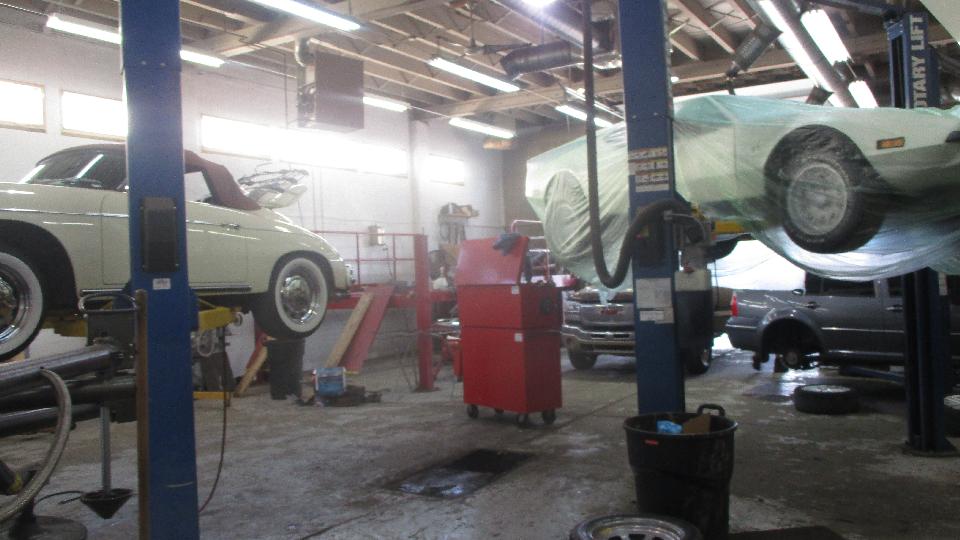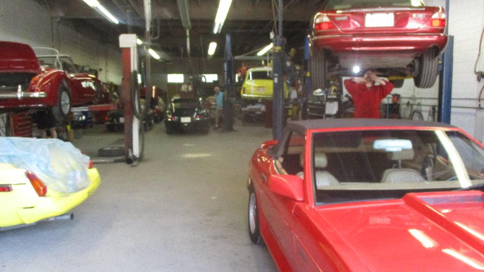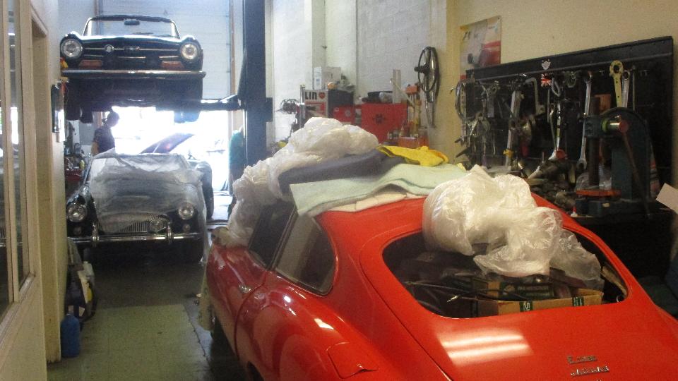 They had just bought the Jaguar E-type V12, going through checkup and full service prior to looking for a new owner. Quite a number more cars outside waiting their turn.