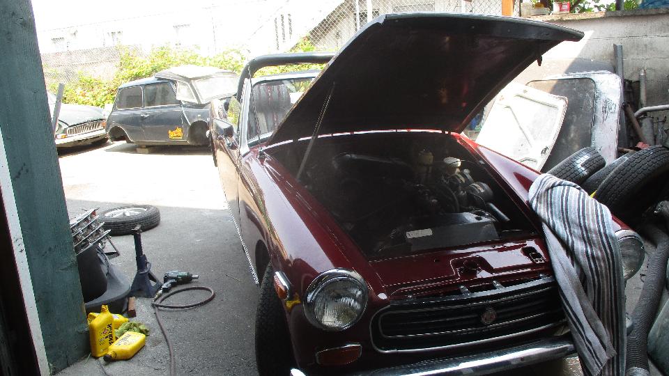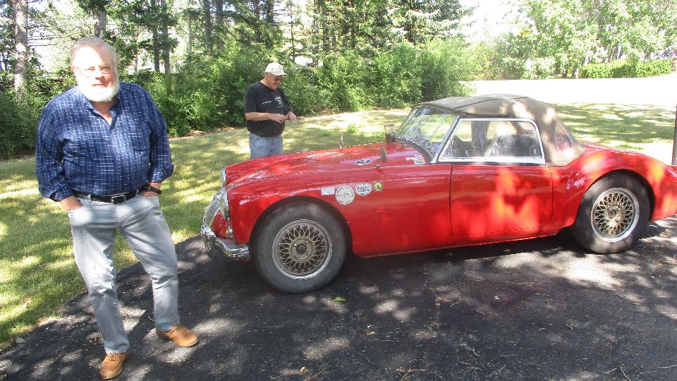 Late breakfast followed by a few hours of WiFi catch up. By mid afternoon we were in for a visit with Dean and Joan Sandham in Calgary. I was immediately impressed by the workshop containing Dean's 1959 MGA 1500. This had some tune-up issues which we would tend to later.