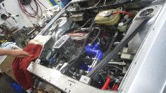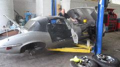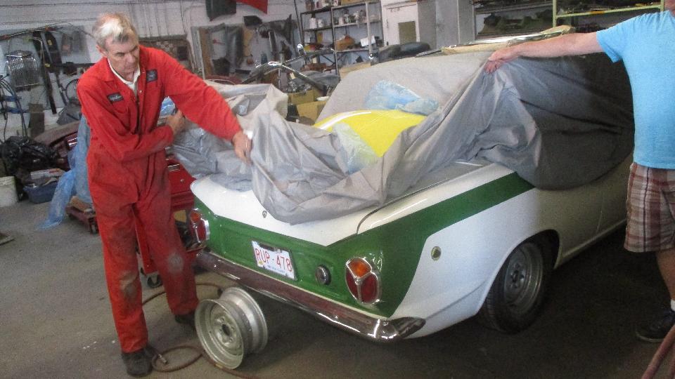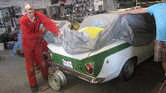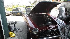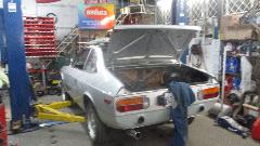 On the lift a TR8 nearing full restoration. When they asked me how I knew it was TR8 (not TR7), it was a matter of playing the odds (that few people would be restoring a TR7). And I think a Lancia front drive coupe with battery relocated to the boot to make room for a fresh air box for some electronics under the bonnet.