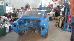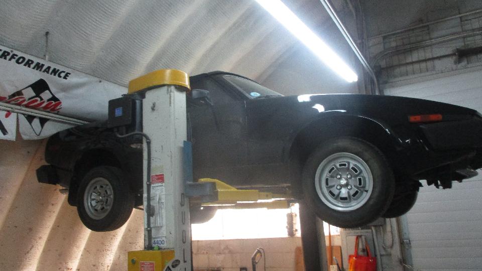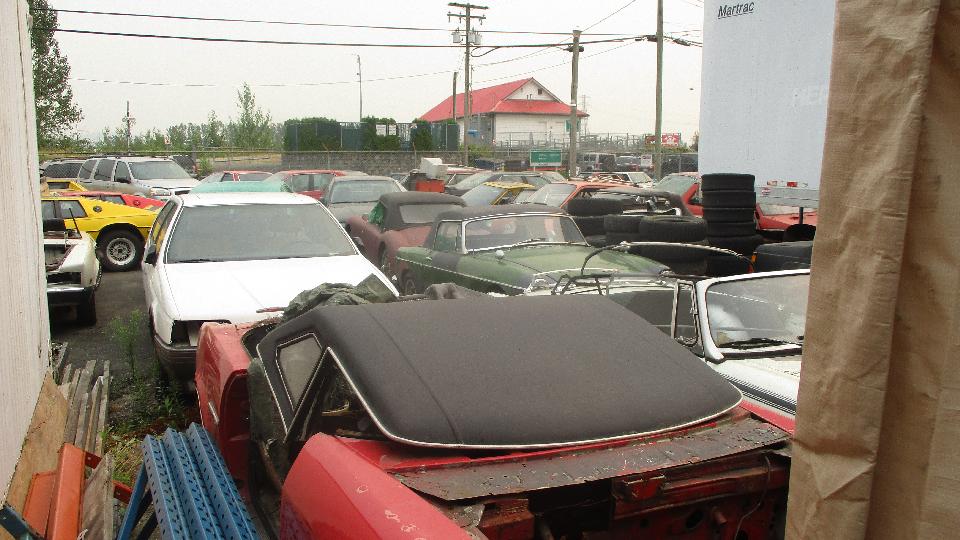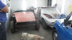 Below left is either a Fiat X19 or Lancia X1/9, in for a little body work and repaint. Outdoors a LOT more cars waiting in the queue. If you see something you like, give them a call and maybe they will get it together for you.