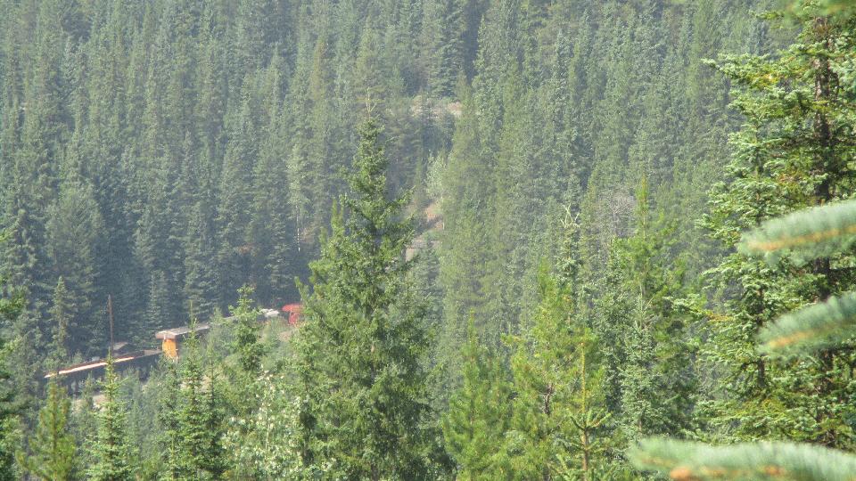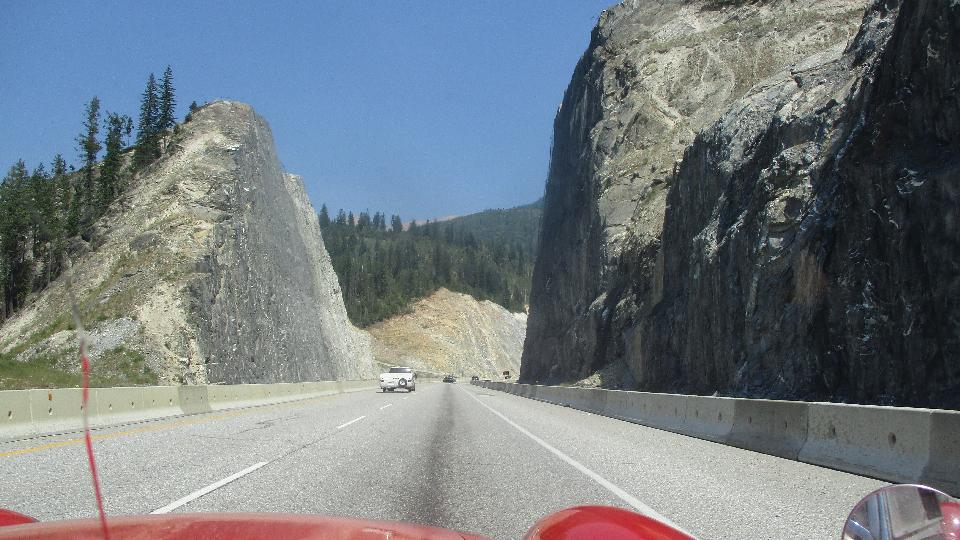 A long stint on WiFi finally got us caught up with photos and notes, and a good download of email (like three days worth). Lots of notes from Calgary, and we lost an hour to a time zone change, so tally on about 2-pm (or was it 3-pm?). There followed a long stint of 6% to 8% grades, sometimes having trouble hauling the trailer up the hills in 3rd gear.
