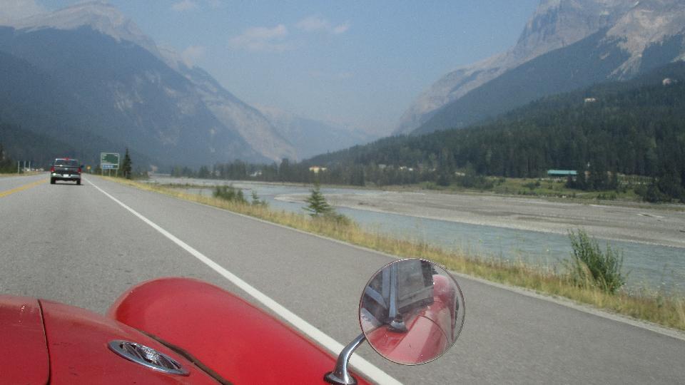 Another 100 miles on this morning we stopped for late breakfast (and WiFi) in Westbank, BC. We had hopes of visiting another shop, Drakes' British Cars in Kelowna, BC, but so far no response to my phone call voice message. But they are well known, and they do have a good web site. So we will likely use most of the day for WiFi work, and toddle on farther east tonight. We are supposed to be in Calgary sometime tomorrow, and it is still several hours away. At least I finally got caught up on photos and notes in this trip log today. And I can catch up on BBS but now can't download email again, or FTP files to my web site server. Oh well, maybe you will see this stuff in another day or two.