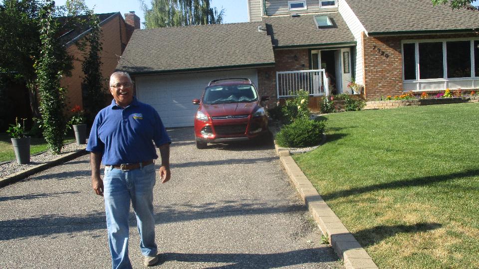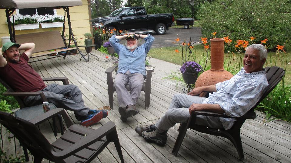 After a short cool down the car took two quarts of coolant, consumed sometime in the past 10 days. I think I found a tiny leak in the solder joint on the front face of the radiator top tank, to be looked into later. Back to common running temperatures, we made good time on the expressway (hills and all). By 6-pm we were greeting Azim Bhatia in Calgary, AB. I think he has an MGB stashed somewhere, but we were busy recuperating from the day's heat, and there were a few friends over for BBQ.