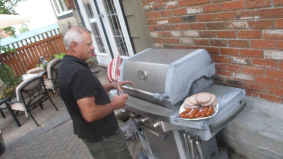 Then the BBQ was on, but the weather turned to blustery and rain, so the party moved indoors. Nice chat with friendly folks, and I got them to ante up names, addresses and phone numbers for our Friends list, so we may be able to visit and check out their toys as well.
