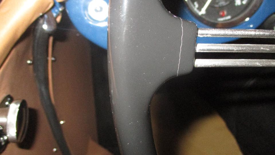 We had one last look at Brian's MGA with a bit of discussion about the original steering wheel. Brian had ground out some cracks in the phenolic of the rim, filled them with JB Weld, sanded it smooth and repainted it. Unfortunately some of the cracks had returned, which was a significant disappointment.