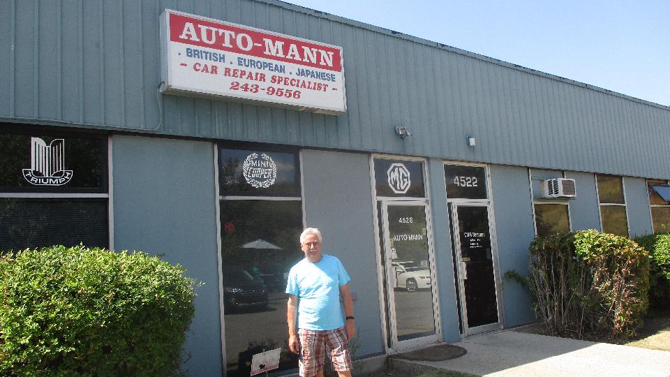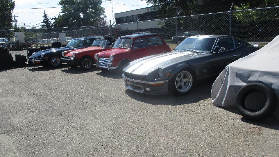 Next up was Auto-Mann, British Sports Car Specialists in Calgary. Say hello to Bill Ridge. Busy place. I estimated about 20 cars in process today, that many more in another bay waiting their turn. Below right is a Austin Seven in process of full restoration. Follow that with one of my favorites, the early MGB pull handle car (100 pounds lighter than the MGA). The Ford Cortina was very popular if you wanted to carry four people. More Brits and a Datsun Z-car outside.