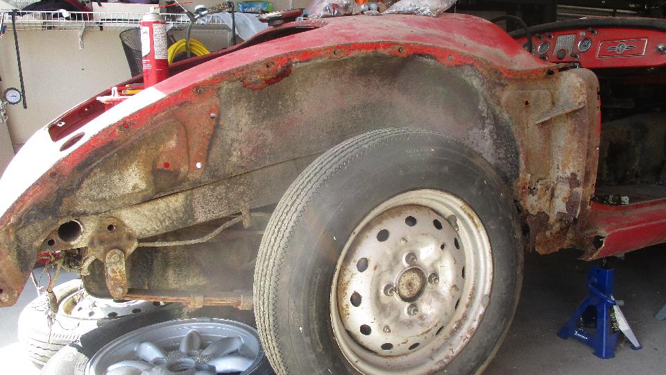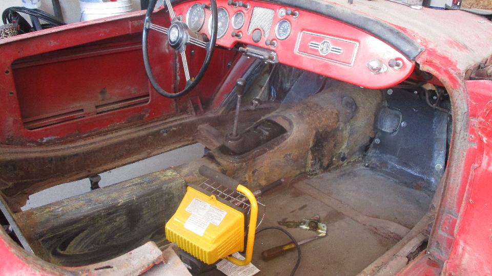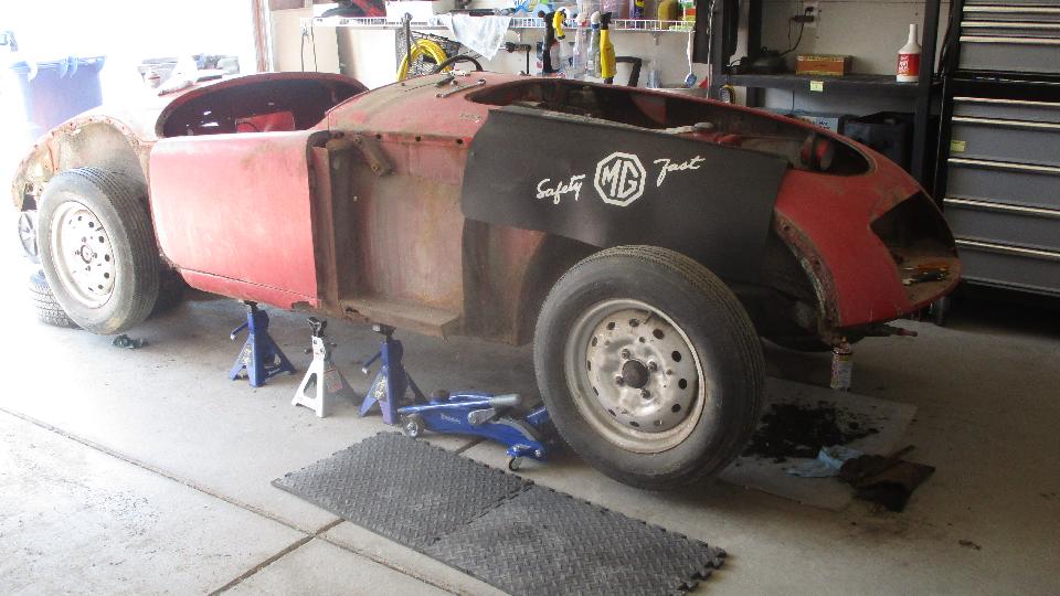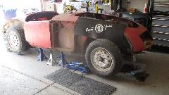 But we were really here to check out his MGA project car, kind of early in the process. Body sills have typical tin worm issues, not too difficult to handle once you get the hang of cut and weld. The frame has cancer in a few places, but it looks repairable. When he mentioned thoughts about converting it to suicide doors I had to crawl all over his ego to talk him out of it. We had a nice chat with some good ideas about how to proceed.