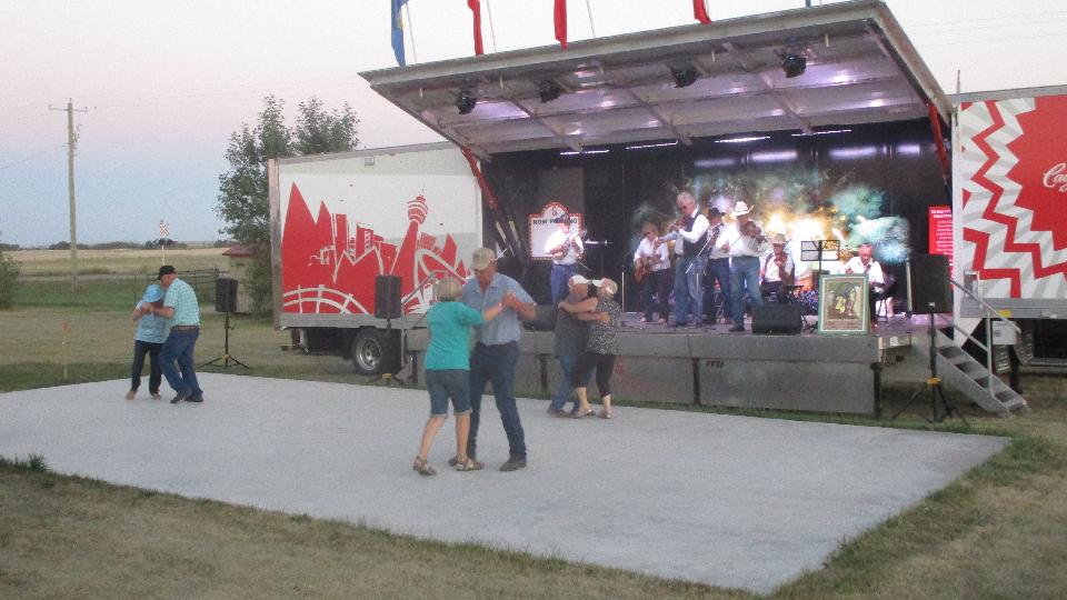 Friendly chat led to a 5-pm BBQ. When Dean had to run off for the evening, I went along with him a half hour away as he was to be playing banjo in a 7-piece combo at Pioneer Acres of Alberta Show & Reunion in Irricana, Alberta, Canada.