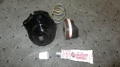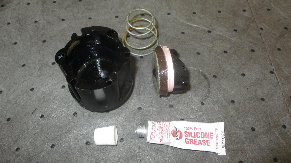Add a smear of silicone grease to the leather flange and cylinder wall. With the vacuum piston working it was time for reassembly, along with the felt button and set screw in back to control the air bleed rate for timing. Installation is the reverse of removal, so in short order the self-cancelling turn signals were working for the first time in many years (insert big grin here).