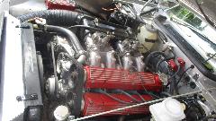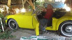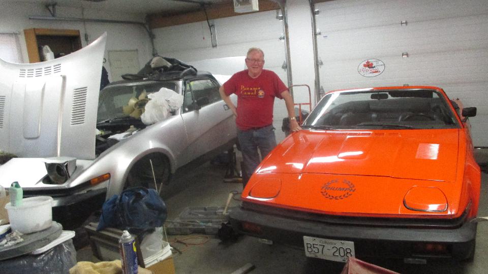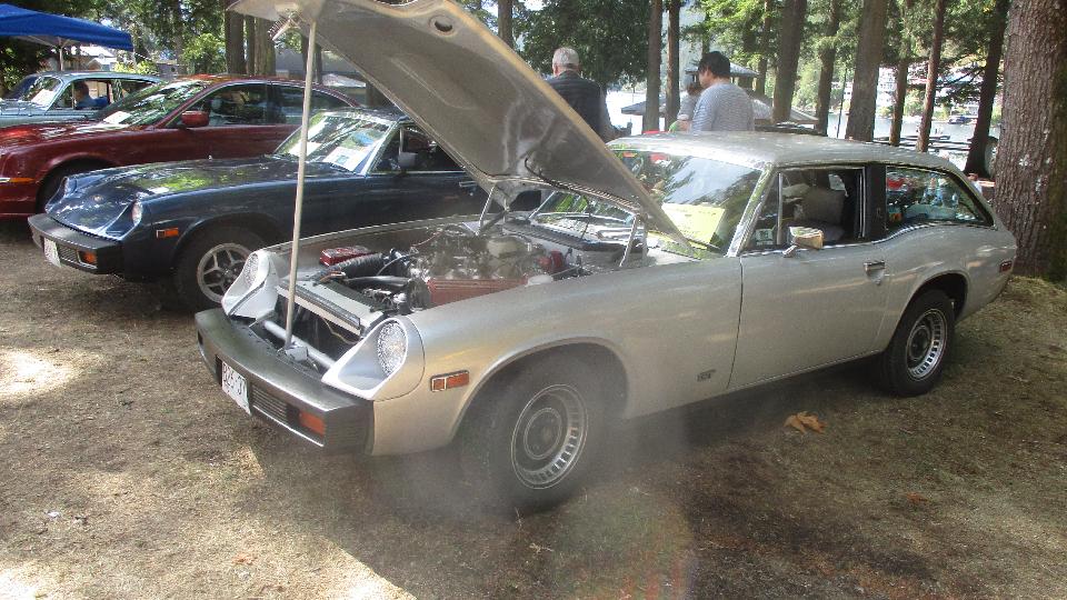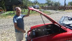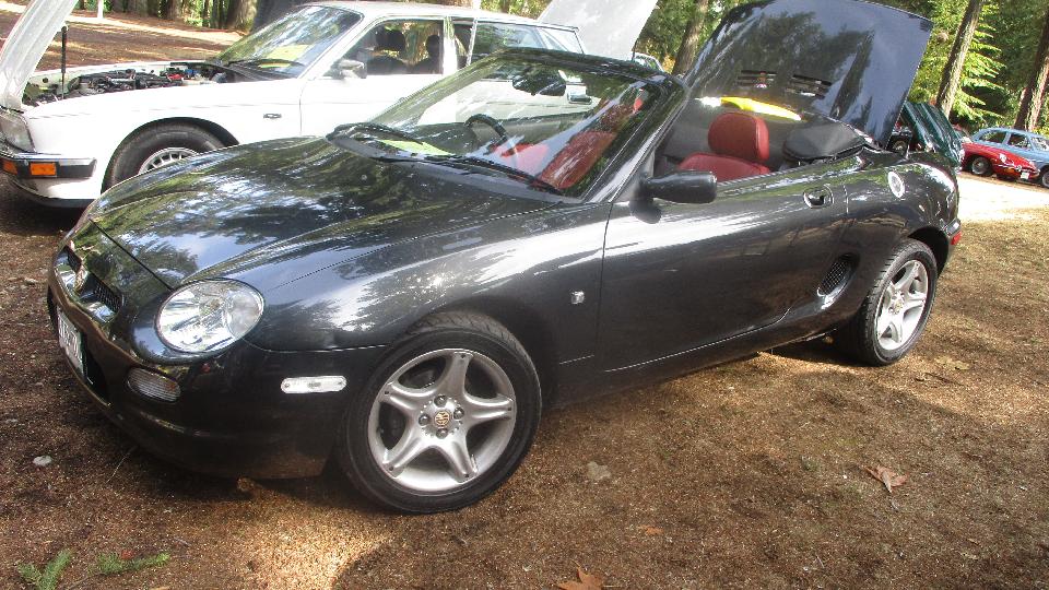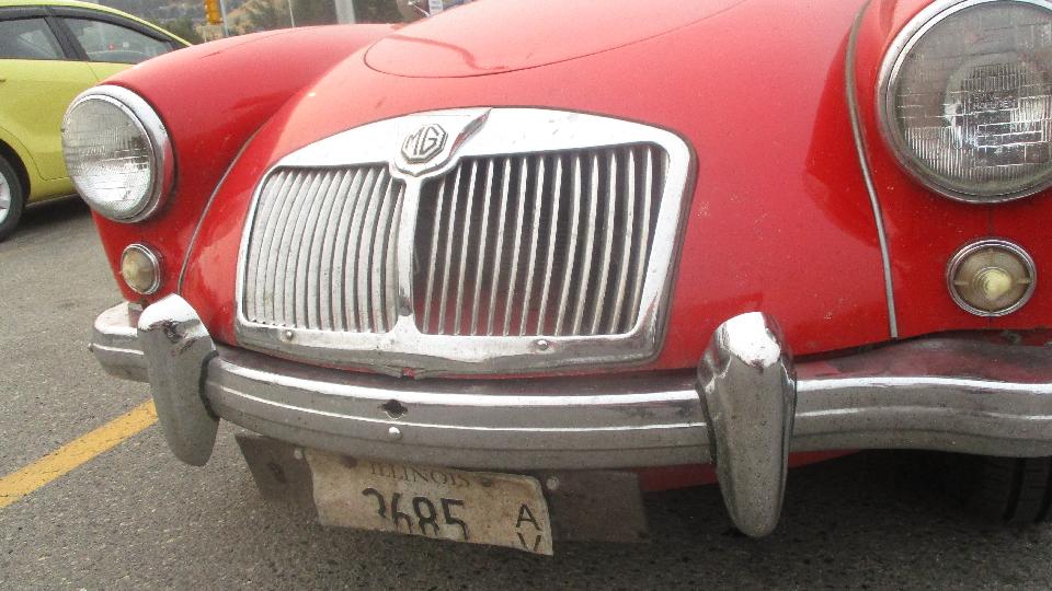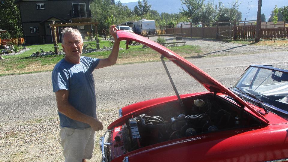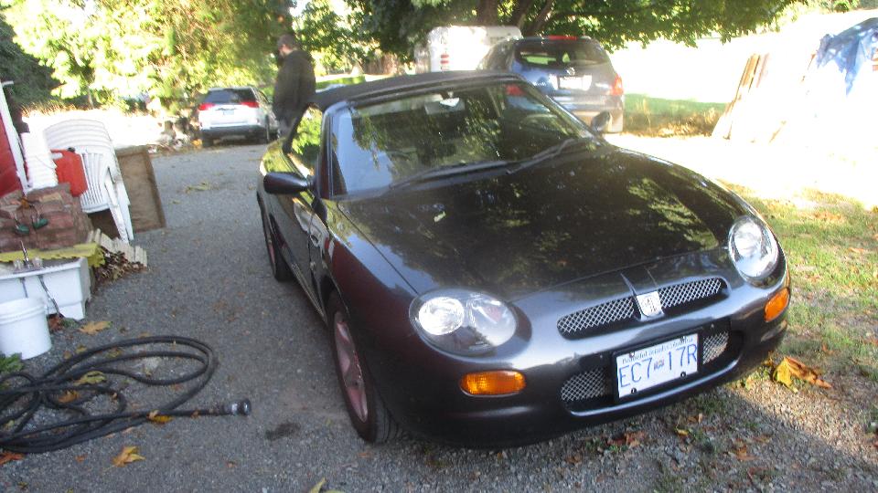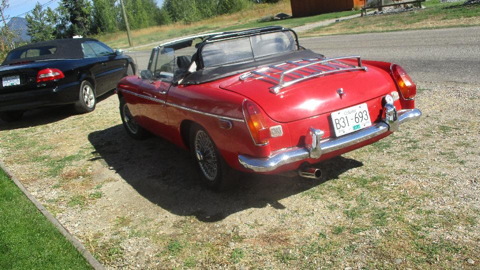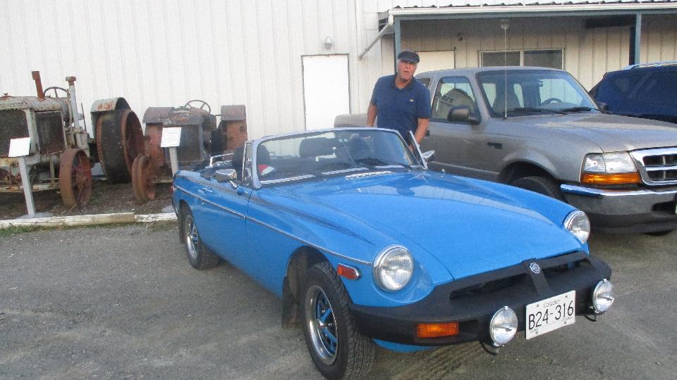 Better seen in the light of day, this would be Niel Findly in Kelowna showing off his 1979 MGB (yes, looks can be deceiving). Lowered suspension, chrome bumpers, dual carburetor conversion, reversing all those things the factory only did because of government regulations (except keep the power brakes).