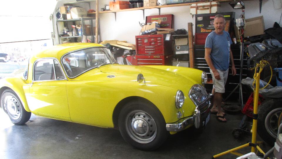 Here I finally met Doug Holburn, the young owner of the very original Alamo Beige MGA that has been in the family since new. You can back up to July 28 to find "before" pictures of that one. It has since been progressing with a good rub-out to improve the paint and chrome, soon to be back on the road. We have an appointment for another visit with this car next Friday.