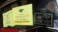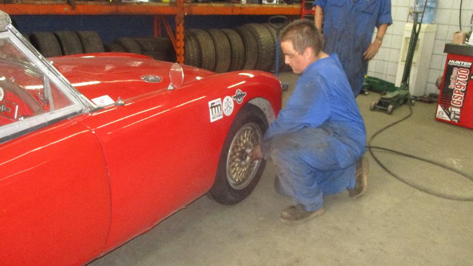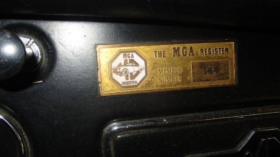 A peek behind the workshop finds a nice MGA 1500 tucked under a canopy. Originally OEW with black and white seats, now yellow with all black trim. Noticed it has two 1500 type wheels and two 1600 type wheels (a surprise to Terry). Also a dash plaque from the old MGA Register, which predates NAMGAR by a few years.