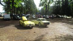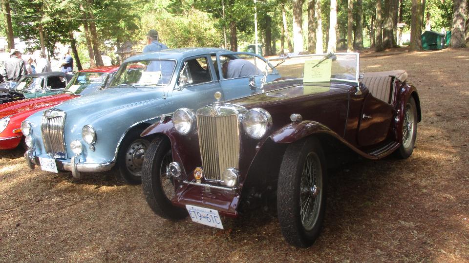 A beautifully restored MG TC next to the MG ZA Magnette. A pair of Jensen GT with the Lotus twin cam engine. Brits like to call these small 2-door sport wagons "Shooting Brake". Go look it up.