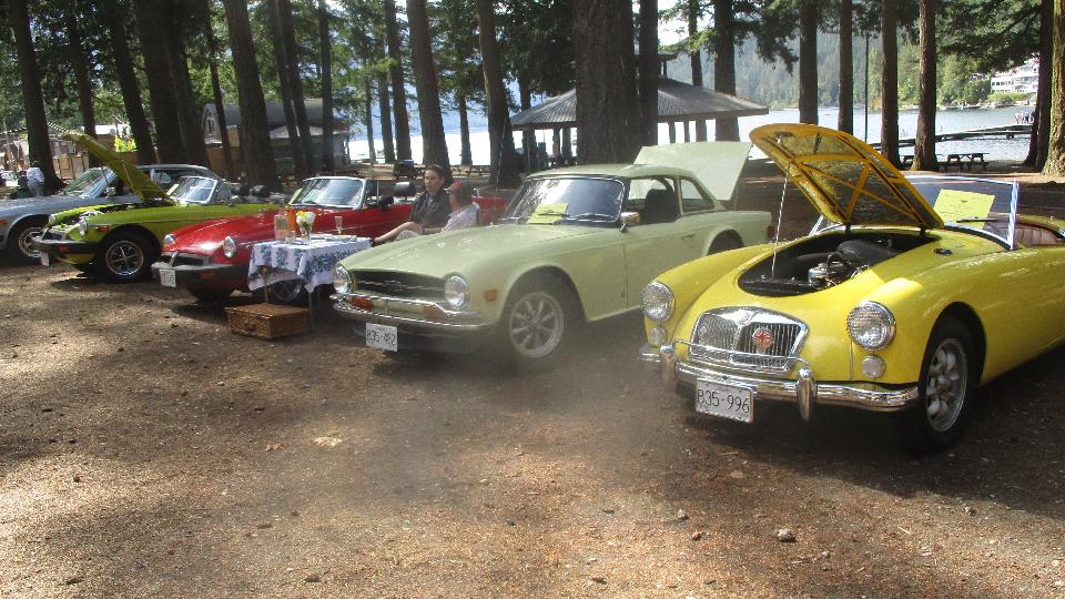 Fraser Valley British Motor Club, car show and picnic at Cultus Lake, BC. By mid morning I counted 45 British cars on display, and a few more would roll in later.
