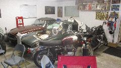 Stepping outside, the first vintage British vehicle to catch my eye was the Leyland 154, which is a variant of MGA (well, sort of). This one has the Austin B-series 1.6-L gasoline engine with a Triumph carburetor (go figure). They might otherwise have a 1.5-L diesel engine (about 28-hp at 2500 rpm). For more information about the Leyland 154 see tech article VT-103T. Inside we found a pair of MG, a Triumph 750 twin, and a Harley Davidson "bitsa" bike (bitsa this and bitsa that, assembled from spare parts).