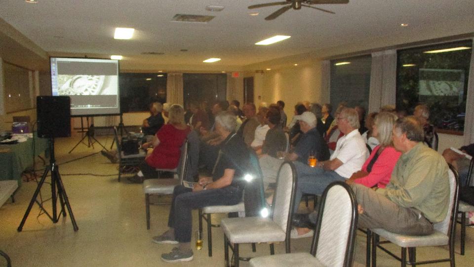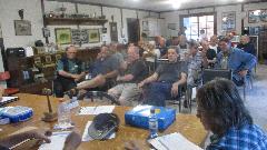 You can poke the pictures, but I count more than a dozen vintage British cars in attendance, and about 30 people inside for the club meeting.