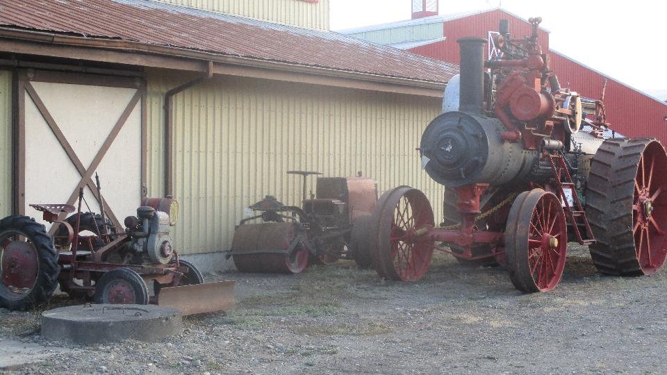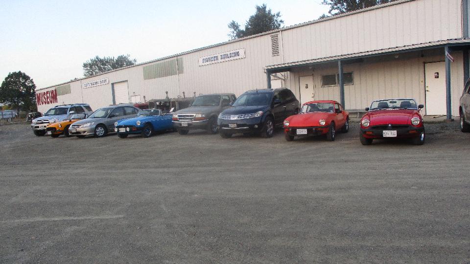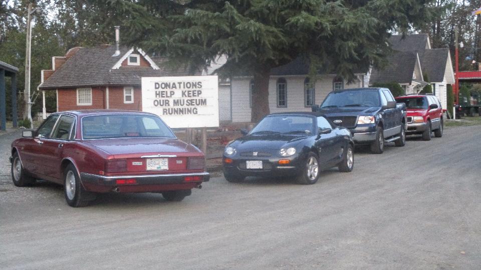 Our evening appointment was an hour back east for a meeting with Fraser Valley British Motor Club at Atchelitz Thresherman's Club Room in Chilliwack. Situated next to the fairgrounds, the place is like a small town street lined with museum buildings and collections of vintage farm machinery.