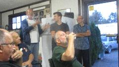 Inside more than 30 people assembled for the business meeting, and a short video compilation of Jeremy Clarkson and highlights of the Top Gear series.