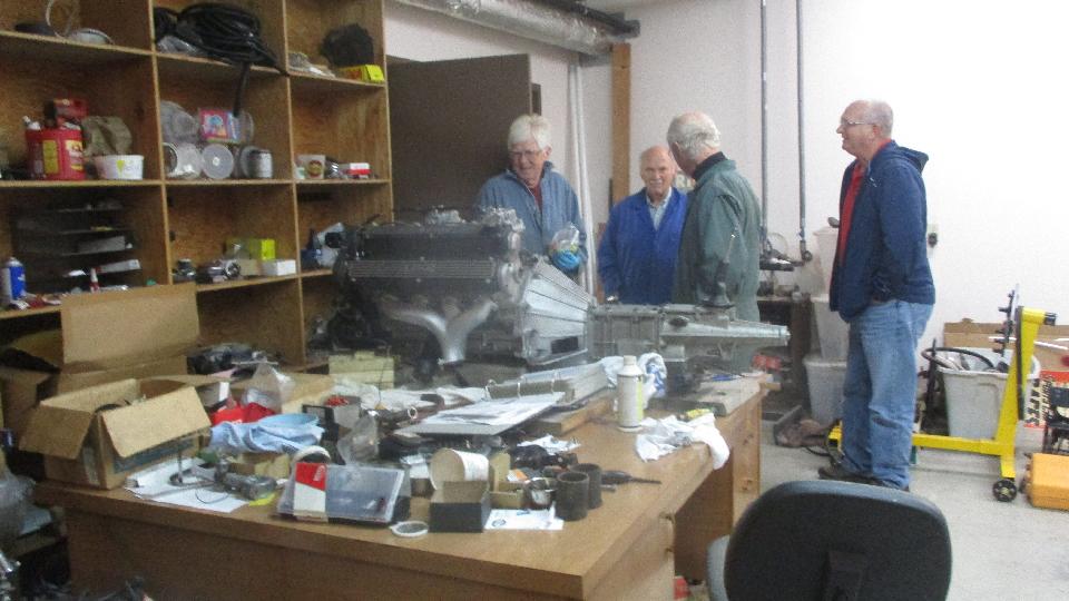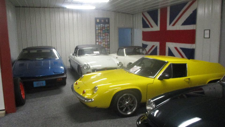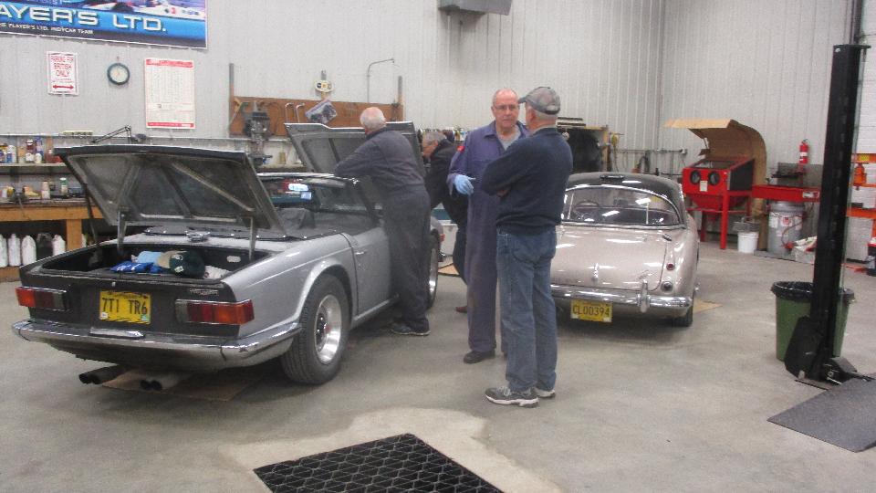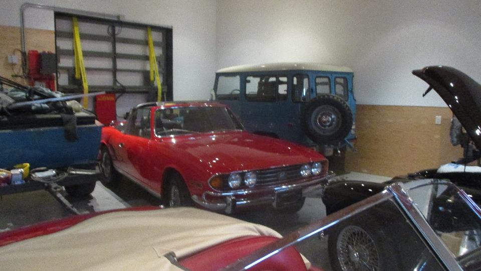 Next to the Lotus was a Triumph Stag ready to fit the carburetors. A couple of TR6's for tune-up work and other minor tweaking. I think the big Healey is resident, completely restored, finished.