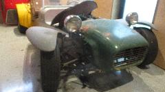 Behind the kitchen was the engine assembly room and upholstery shop. Slipping through the side door into the workshop space the first car in view was the resident Lotus belonging to the prior engine and gearbox. Restoration work is well into the reassembly stage.
