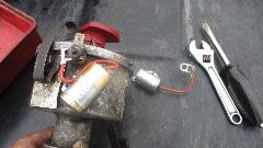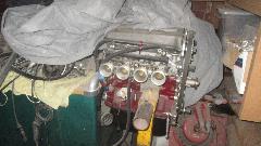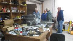 On the side there was this Austin B-series engine (think MG Midget), with a roller cam. And it that wasn't enough, also a BMW dual overhead cam cylinder head. Say WHAT? How fast did you say you wanted to go? The tool in the center is a special multi-step reamer used to enlarge the tappet bores in the engine block to fit the smallest size roller tappets available. Had to go, but at least picked up a a few good condensers on the way out.