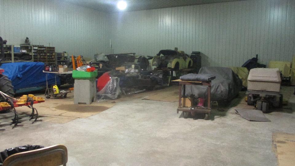 Stepping into the back bay, mostly for storage space, a few complete cars and a few restoration projects. In another month or two most of the space will be filled with friends' cars for winter storage.