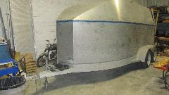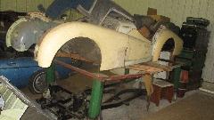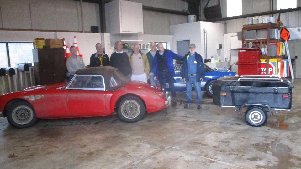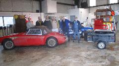 Another big Healey disassembled and waiting, and a TR3 in mid restoration. There was a nice aluminum cargo trailer that is reported to be easy towing just big enough to carry most of the little British cars, although the big Healey didn't quite fit when bumpers were installed due to the taper at front of the trailer.