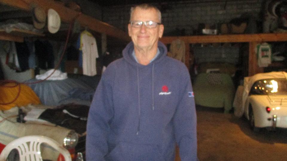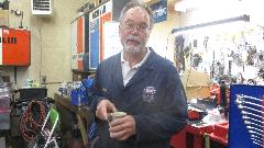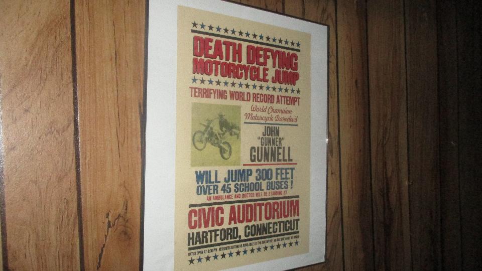 Gunner's "Hansen" garage is quite nice for its age with plenty of shop space and the requisite facilities. The poster is from John's younger years when he used to be a motorcycle daredevil rider. No British cars here today, but there is at least one in his shop in Manawa.