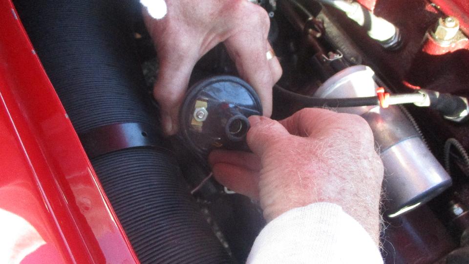 Then we headed back to Graham's place where the gang was finishing up their work. After everyone had left and we were about to go, the phone rang with a message that one of the MGAs was dead on the road a few miles away. So we took my car for the rescue run. Five minutes of diagnostics revealed a dead ignition coil with open circuit in the primary winding.
