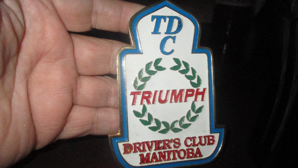 In the evening we were back in Winnipeg for a "Tech Session" with some members of the Triumph Drivers Club of Manitoba. Actually a natter "N" noggin, but "Tech" sounds better for the wives. They do talk about the cars, so it is sort of a tech session. As I have been collecting stickers for the car, I was offered a very nice grille badge for TDCM, but I don't hang stuff in front of the radiator, and try not to add too much extra weight, so the offer was respectfully declined. I did however collect another club window sticker.