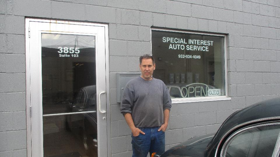 Then we were hauling back west about 45 minutes to Special Interest Auto in Minneapolis, MN. Say hello to Jeff Flynn. The special interest here is mostly Jaguar, although they do work on other vintage British cars occasionally, notice the Ferrari on the lift and the MG TC in the shop today).