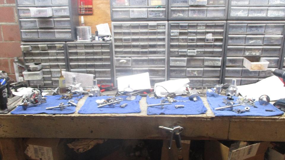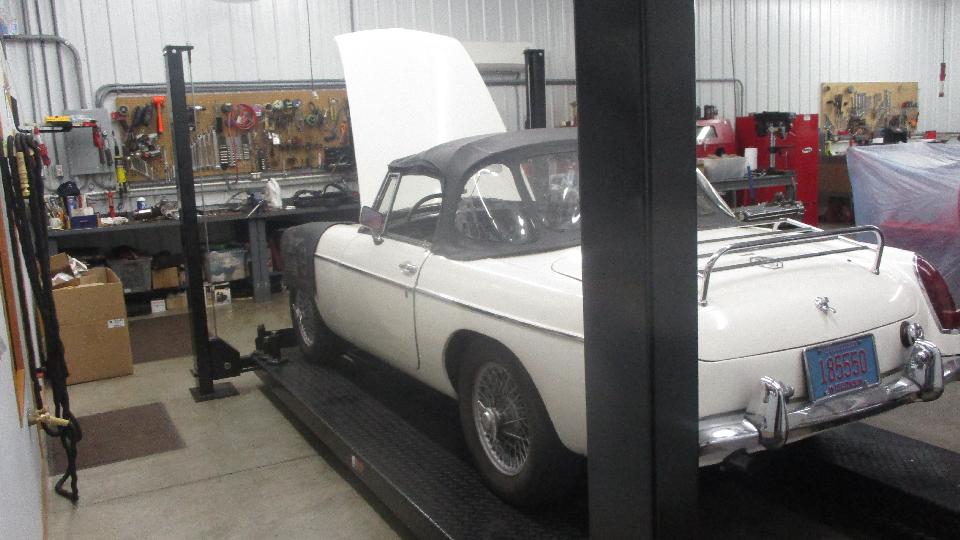 The back shop has space for several more cars and a paint booth. In the paint boot was most of an MG Midget (which will soon be looking for a new home).