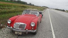 We had one more shop on our list, New Life to Classics in Mankato, MN, supposed to be a restoration shop specializing in MGA. But it was an hour out of town and getting on in the evening, so we should call first. The phone number was disconnected, so we found a WiFi spot to do a little research. Turned out the shop owner Dave Wintz had died in 2015. Apparently his son was in business with him, so we will inquire some more (later) to see if we can find him and if the shop might still be open.