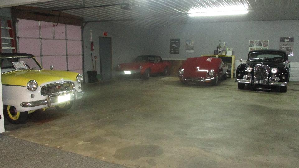 There is substantial indoor heated storage space, which in another month or so will fill up with more cars for winter storage. The BIG British car in the middle is an award winning 1958 Jaguar MK-VIII.
