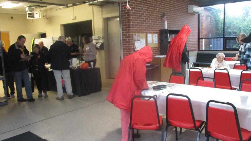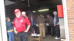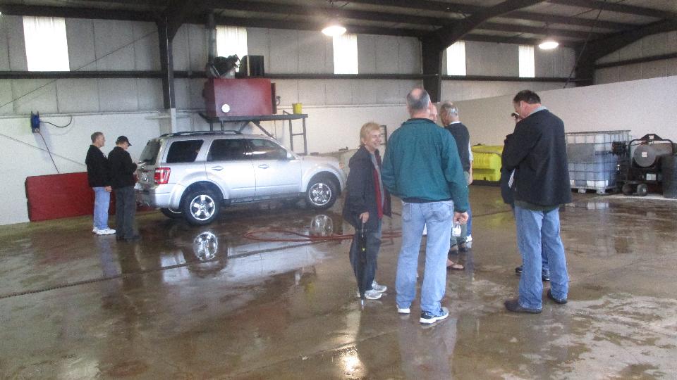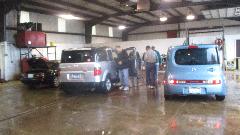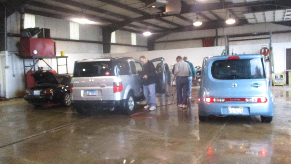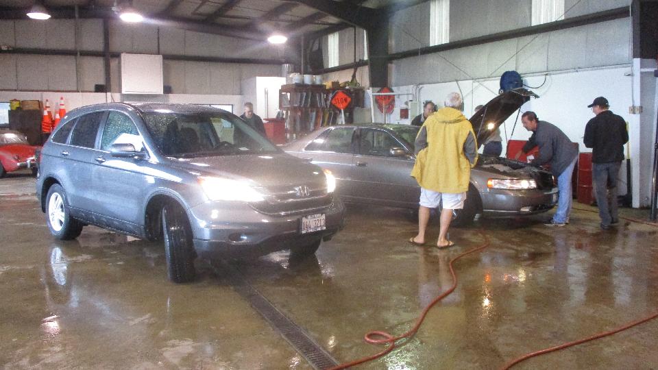 Business began a little slow, but as the weather changed from deluge to just steady downpour the traffic increased a bit. By mid day we had inspected 50 cars in 4 hours. Good results this time with mostly good cars, one a bit low on oil, a couple with no license plate lamps, and just a couple low tires.